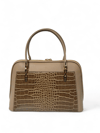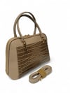 Tok ve kaliteli dokusu formunu korur, zarif dikiş detayları ve altın renk metal aksesuarlar çantaya sofistike bir hava katar.