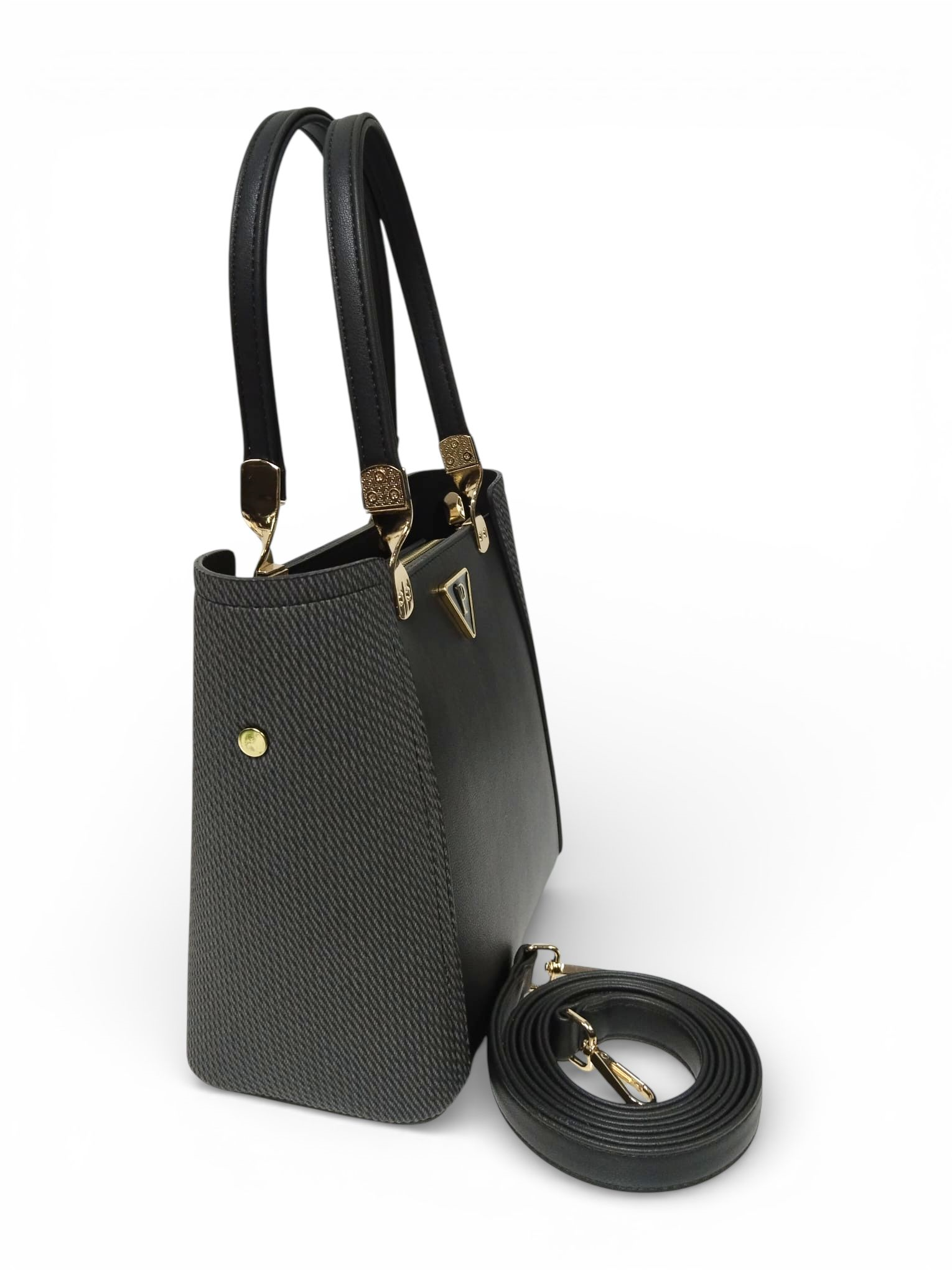 Tok ve kaliteli dokusu formunu korur, zarif dikiş detayları ve altın renk metal aksesuarlar çantaya sofistike bir hava katar.